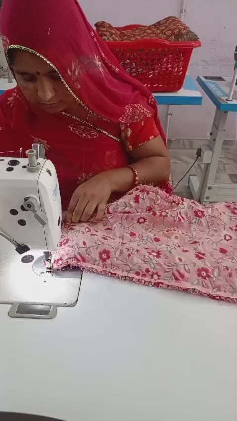 This cushion cover is lovingly handcrafted by the artisans of Saheli Women in Rajasthan, India. The social enterprise provides fair wages, safe working conditions, and opportunities for women in a rural community.
